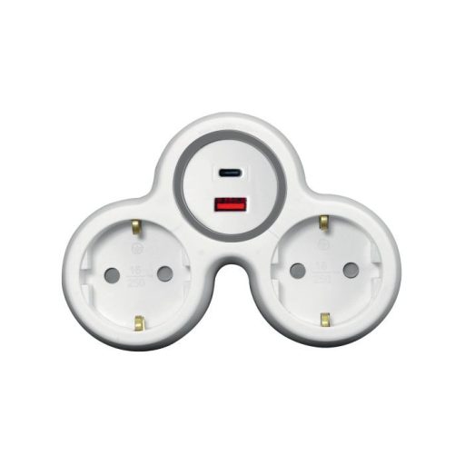 240802 2-es elosztó dugalj USB töltővel A+C fehér-szürke