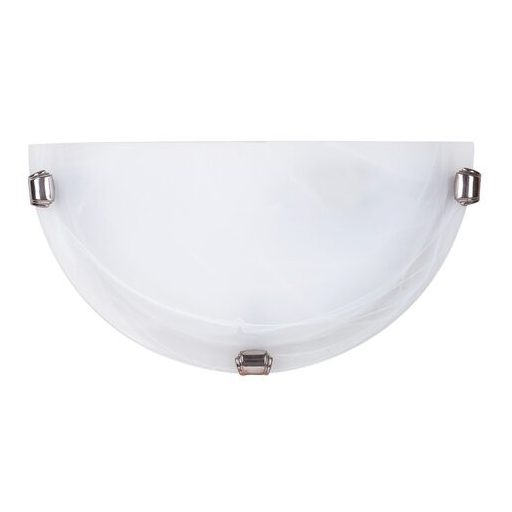 30 cm átmérőjű, klasszikus stílusú fali lámpa. Vastag, fehér alabástromüveg lámpabúrával, króm színű rögzítő körmökkel. 1xE27 max. 60W-os fényforrással használható.