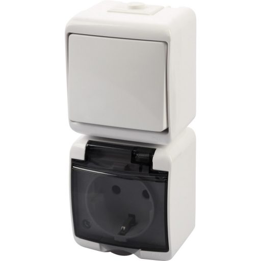 22021 Aquastar földelt dugalj + kapcsoló függőleges, IP54, fehér