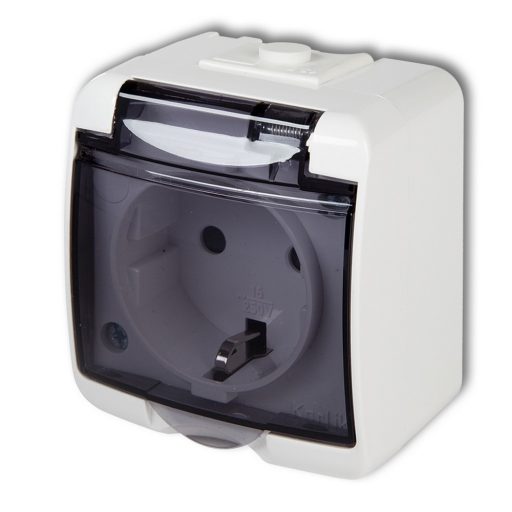 22111 Aquastar földelt dugalj, átlátszó csapfedeles, IP54, fehér