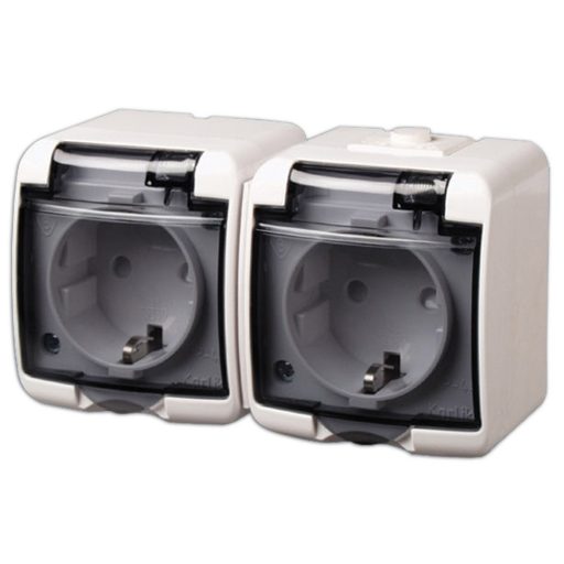 22121 Aquastar 2-es földelt dugalj, átlátszó csapfedeles, IP54, fehér