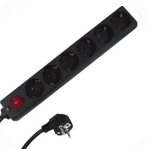 00125171 Asztali elosztó 6-os kapcsolóval, 1,4m, fekete, túlfesz.véd.