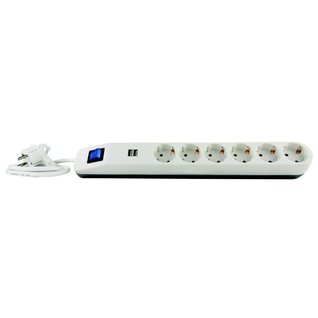 0014648103 Asztali elosztó "ICE" 6-os kapcsolós + 2USB bliszteres