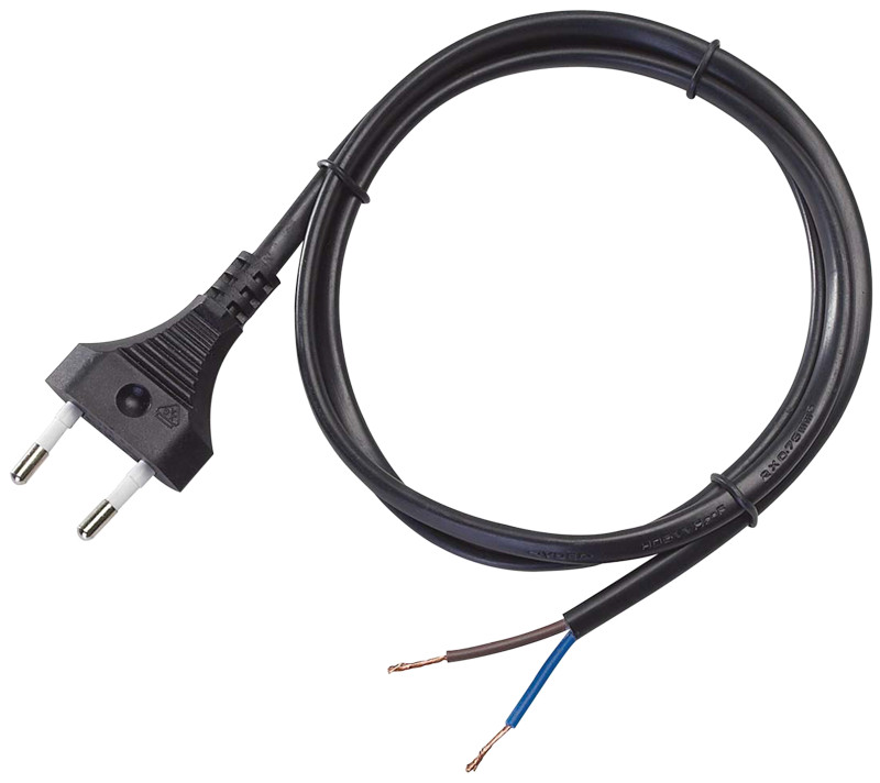 DVKE2X1.0 Csatlakozódugó (EURO) kábellel, fekete2×1,0mm2, 2m, 2,5A, 250VAC, H05VVH2-F, 600W