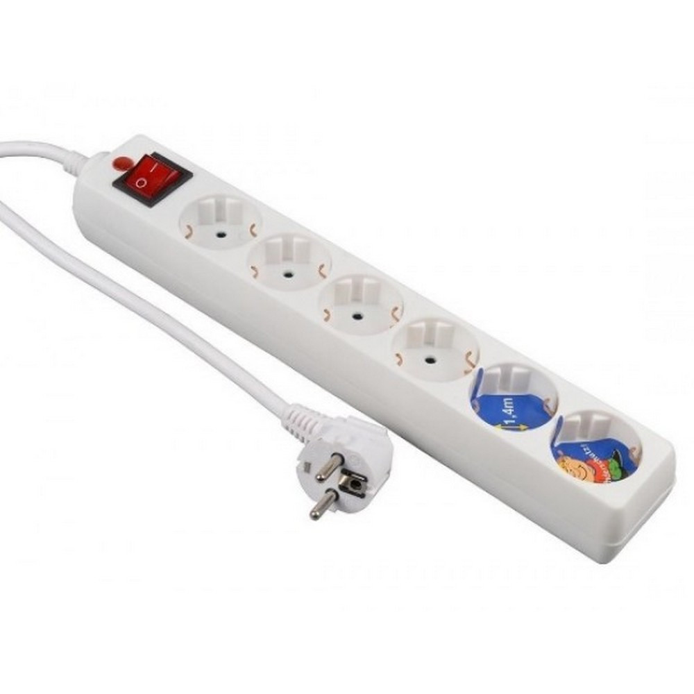 00125101 Asztali elosztó 6-os kapcsolóval, 1.4m, fehér, túlfeszültségvédelemmel