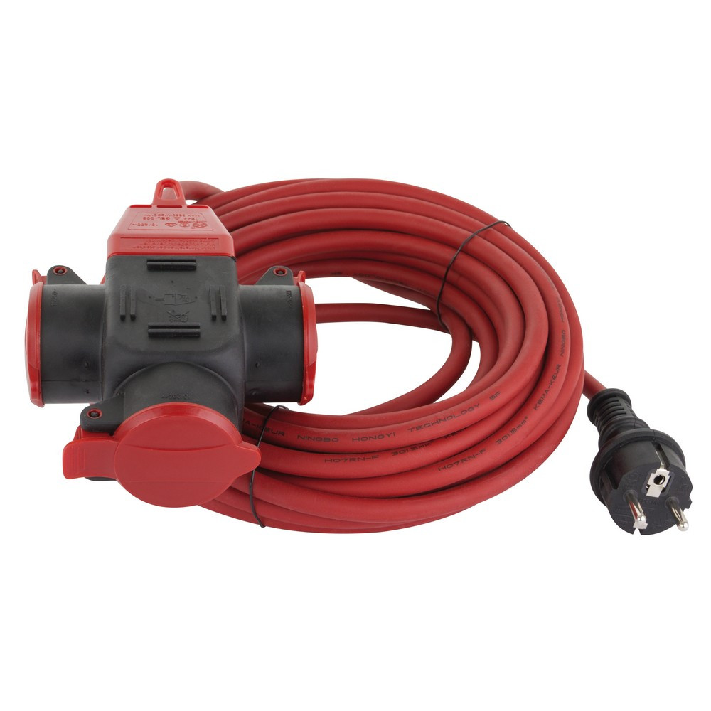 006716 Földelt lengő hosszabbító csf. 3 dugalj, 10m H07RN-F 3x1.5 IP44