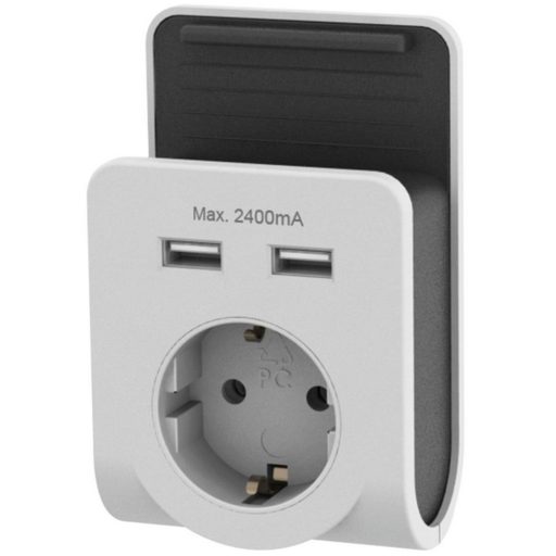 Földelt köztes aljzat, 2xUSB (A-C) töltővel, tartóval (6005H)