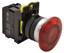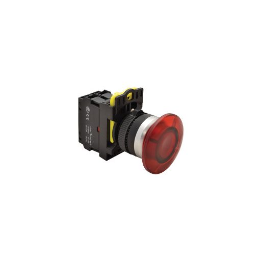 NYG3-MLR Gombafejű világító nyomógomb,piros1×NC, 5A/230V AC-15, 40mm, IP65, LED 230V AC/DC