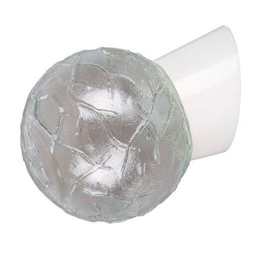 14 cm átmérőjű, retro megjelenésű fali lámpa. Műanyag, döntött aljzattal, mintás és áttetsző üvegbúrával. E27-es foglalatú, maximum 60W teljesítményű fényforrással használható.