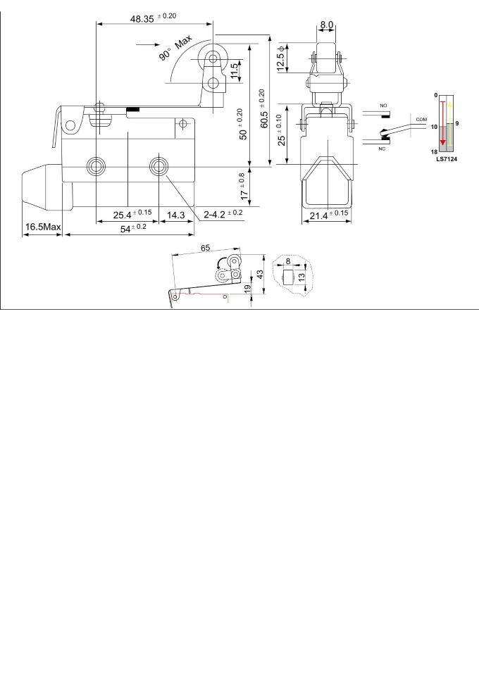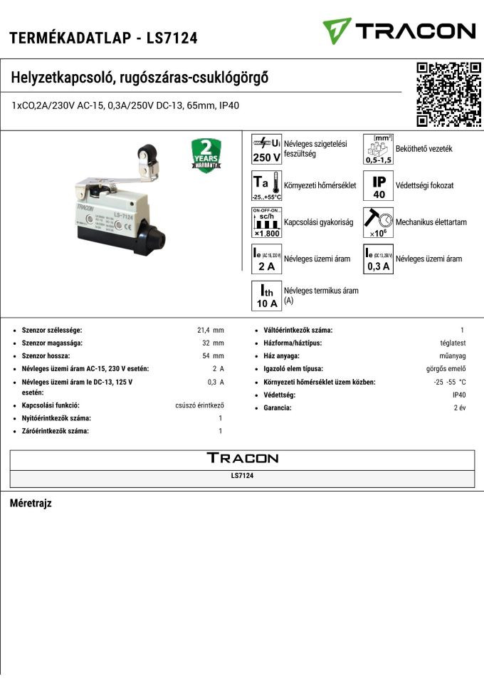 LS7124 Helyzetkapcsoló, rugószáras-csuklógörgő1xCO,2A/230V AC-15, 0,3A/250V DC-13, 65mm, IP40