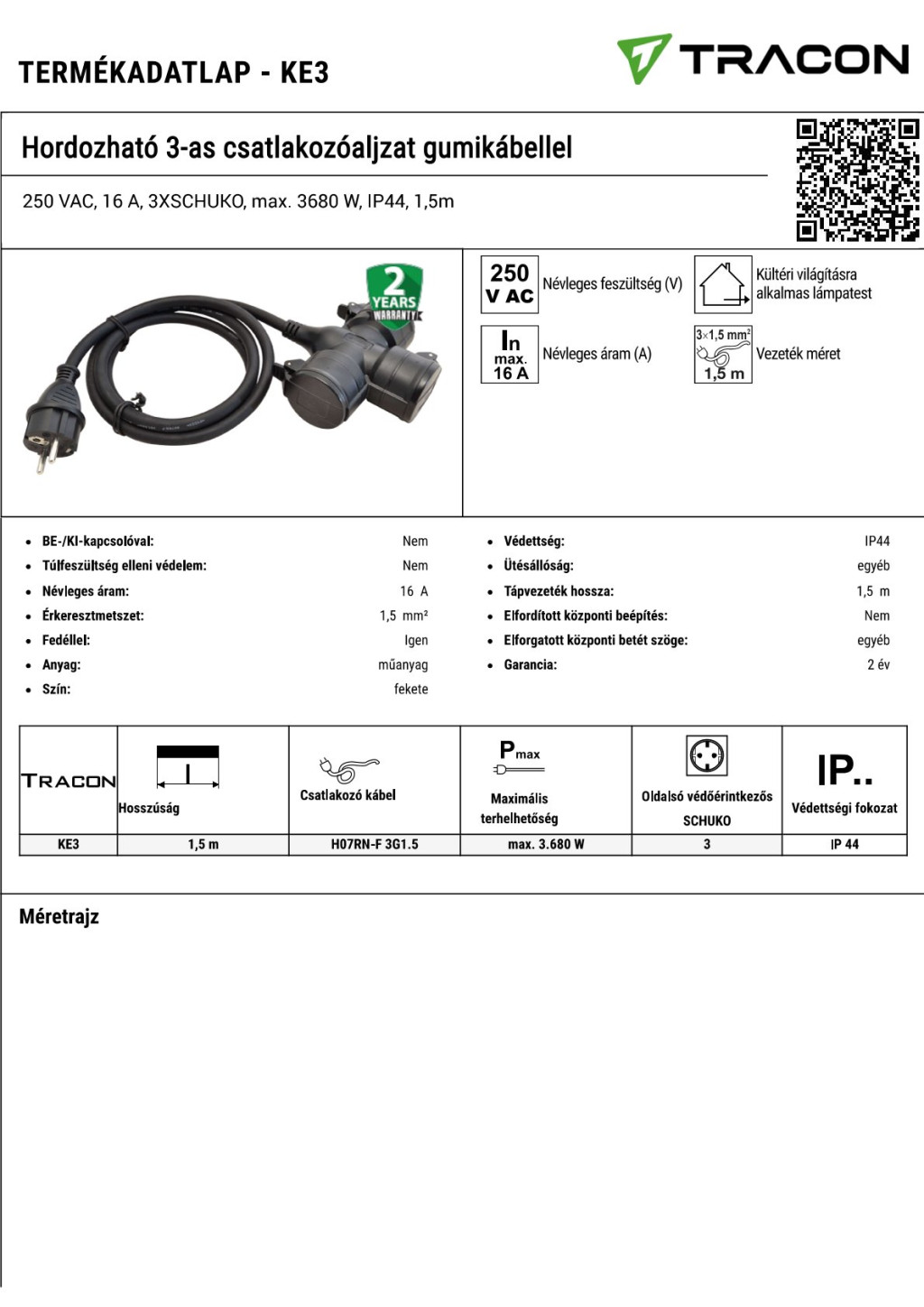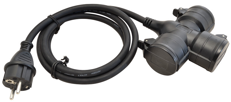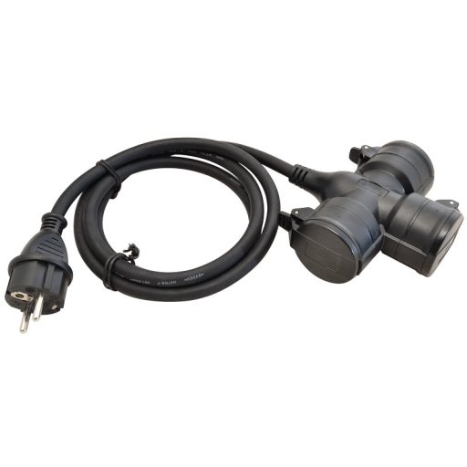 KE3 Hordozható 3-as csatlakozóaljzat gumikábellel250 VAC, 16 A, 3XSCHUKO, max. 3680 W, IP44, 1,5m