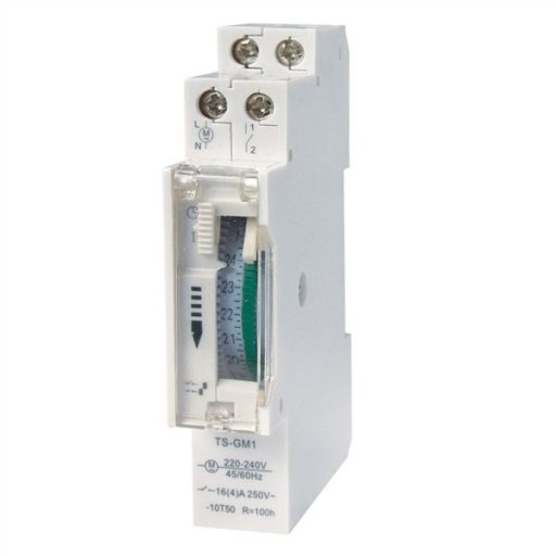 - mechanikus időkapcsoló sínre szerelhető, 1 modul széles