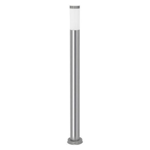 Modern megjelenésű kültéri állólámpa UV sugárzásnak ellenálló kivitelben. 110 cm magas, 11 cm átmérőjű, rozsdamentes acél színű fém lámpatest és fehér színű műanyag lámpabúra.