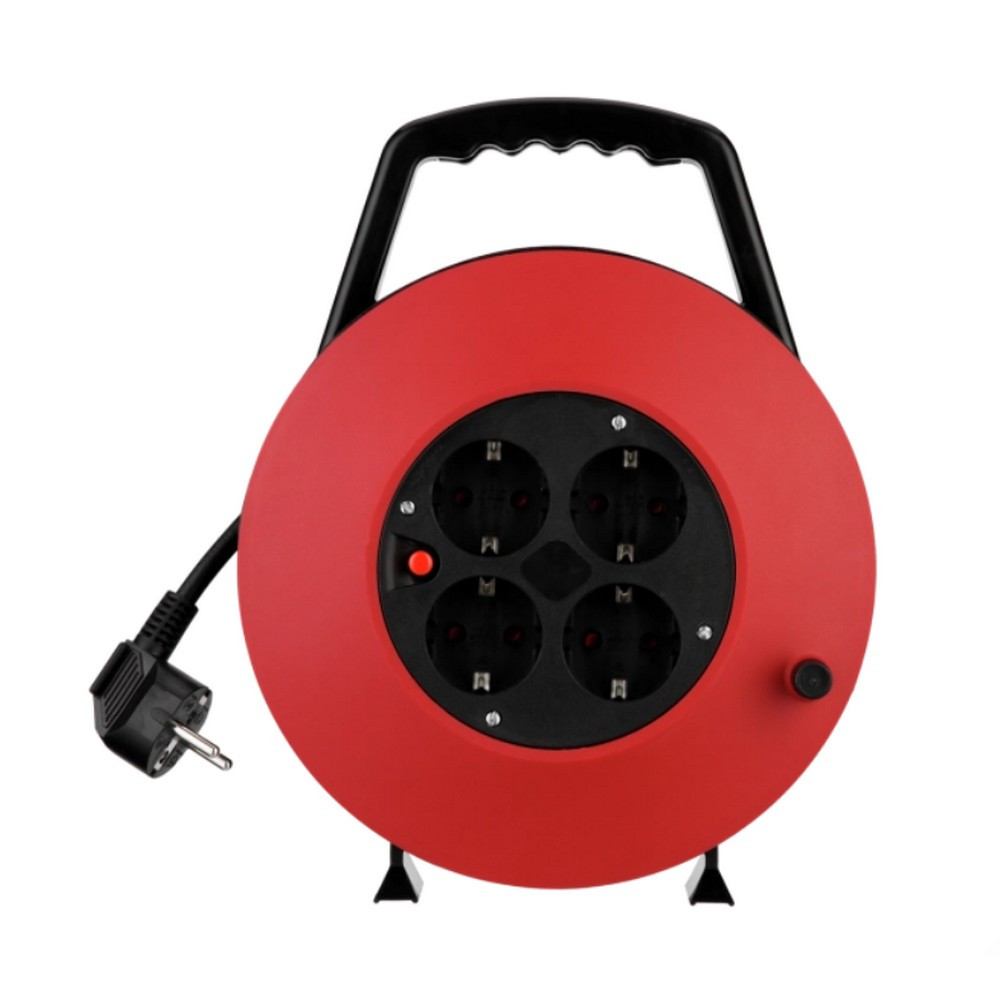 008818 Kábelbox műanyag 10m 4 dugalj, 3x1.5, fekete/piros