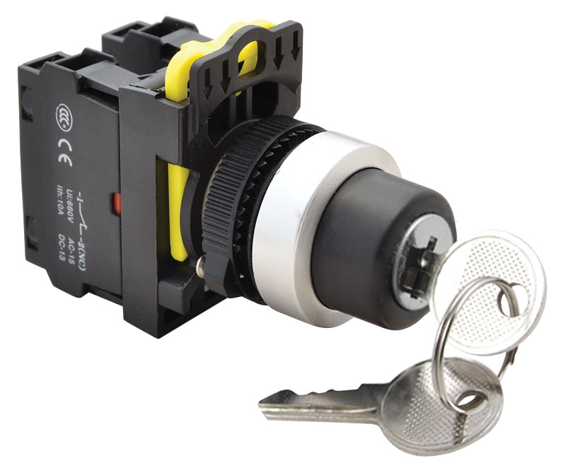 NYK3-K21 Kulcsos kapcsoló, bal-jobb KI,kétállású1×NO+1×NC, 5A/230V AC-15, IP42