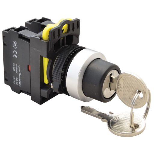NYK3-K34 Kulcsos kapcsoló, bal-jobb-közép KI, háromállású, rugóvissza1×NO+1×NC, 5A/230V AC-15, IP42