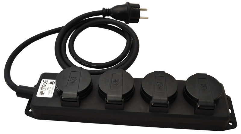 KE4-3M Kültéri elosztósáv, fekete16A/250VAC, IP44, H07RN-F, 3G1.5, 3m, 4×SCHUKO