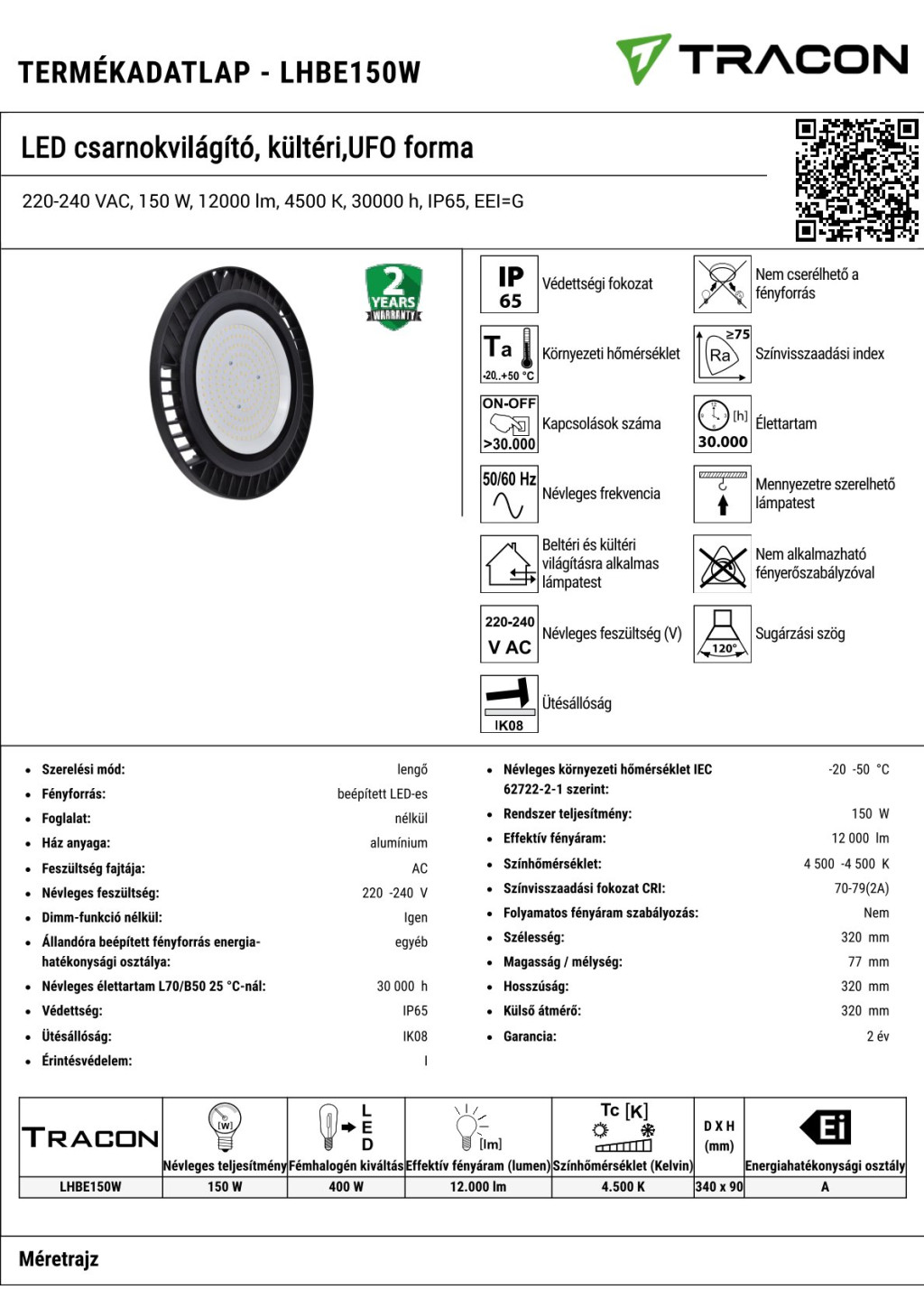 LHBE150W LED csarnokvilágító, kültéri,UFO forma220-240 VAC, 150 W, 12000 lm, 4500 K, 30000 h, IP65,