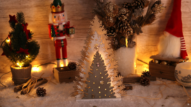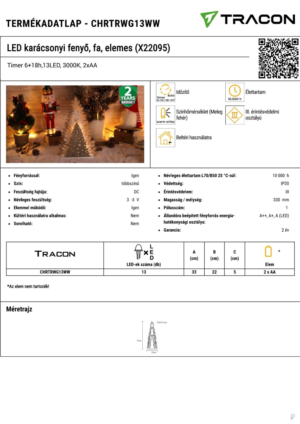 CHRTRWG13WW LED karácsonyi fenyő, fa, elemes (X22095)Timer 6+18h,13LED, 3000K, 2xAA