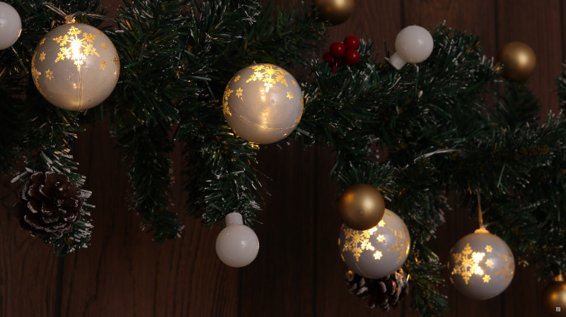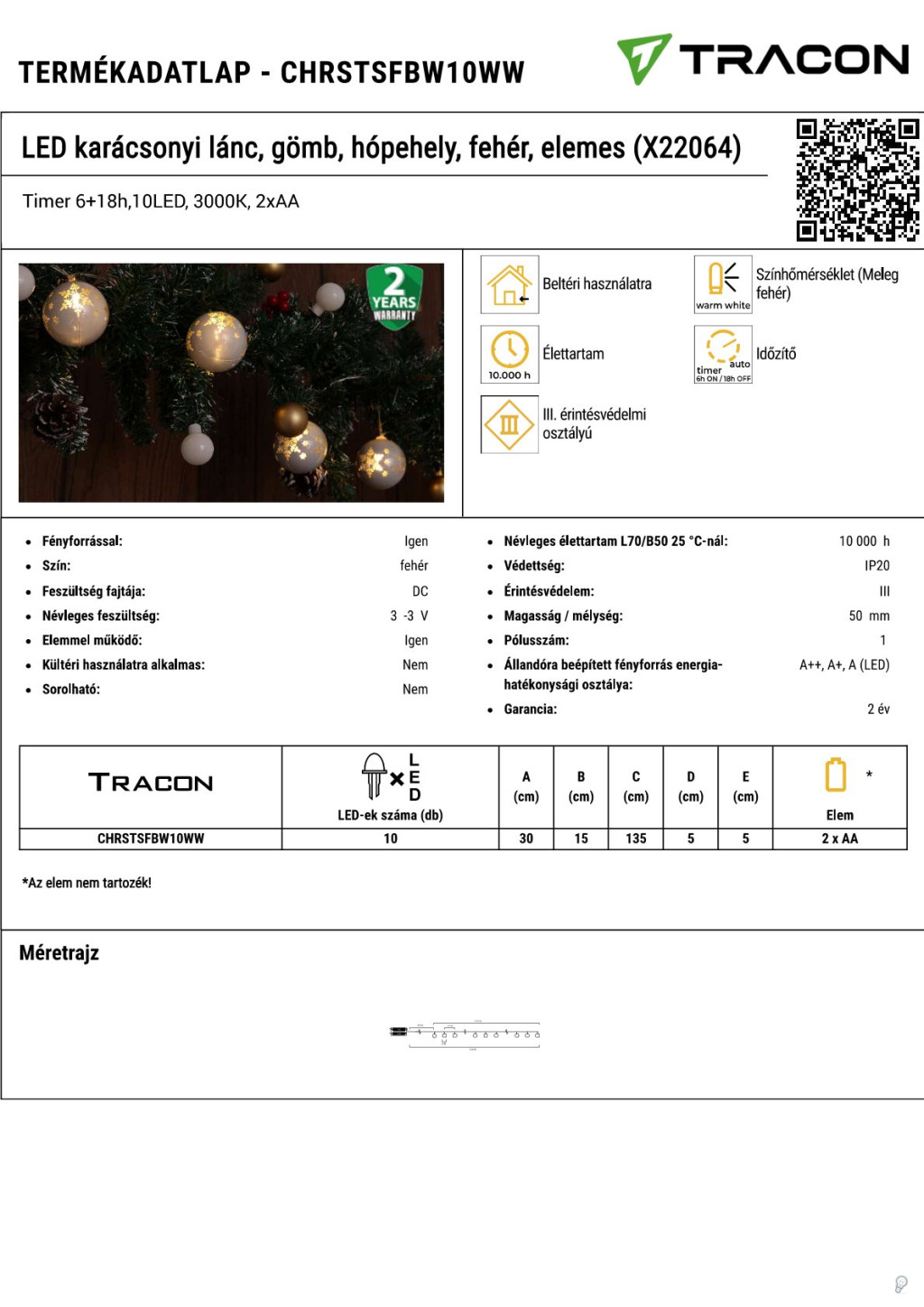CHRSTSFBW10WW LED karácsonyi lánc, gömb, hópehely, fehér, elemes (X22064)Timer 6+18h,10LED, 3000K, 2