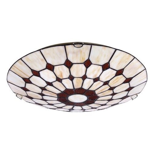 A Tiffany mennyezeti lámpa, egyedi, kézzel készült termék, amely remek választás, ha a klasszikus elegancia mellett egyedülálló, különleges darabot keres. A 40 cm átmérőjű, bronz színű fémből készített lámpatest, színes Tiffany-stílusú üveg lámpabúrával. A lámpatest E27-es foglalatú, max. 2x 60W teljesítményű fényforrásokkal használható.