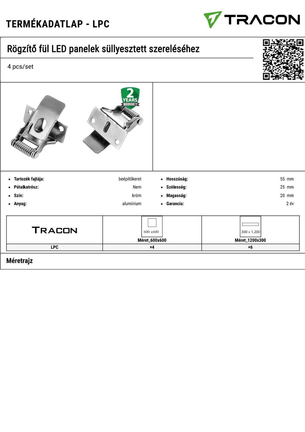 LPC Rögzítő fül LED panelek süllyesztett szereléséhez4 pcs/set