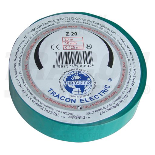 Z20 Szigetelőszalag, zöld20m×18mm, PVC, 0-90°C, 40kV/mm