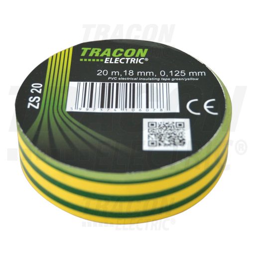 ZS20 Szigetelőszalag, zöld/sárga20m×18mm, PVC, 0-90°C, 40kV/mm