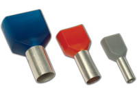 E90I Szigetelt (PA6.6) iker-érvéghüvely, ónoz. elektr.réz, piros2×1mm2, l=8mm