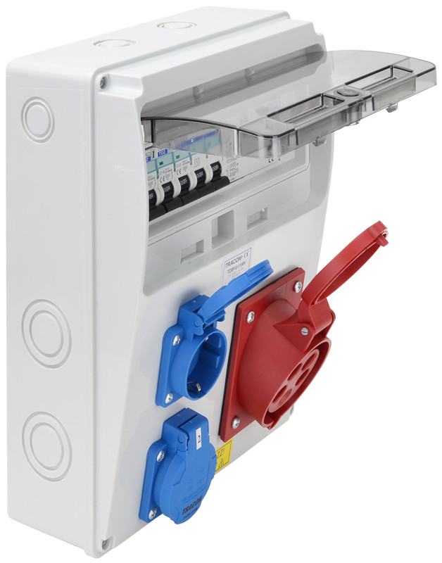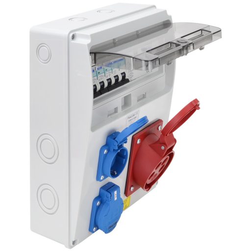 TDB10-11MV Csatlakozó doboz védelemmel, vezetékezett, készre szerelt Prot.:RCCB,MCB,Out:2×SCHUKO+1×3