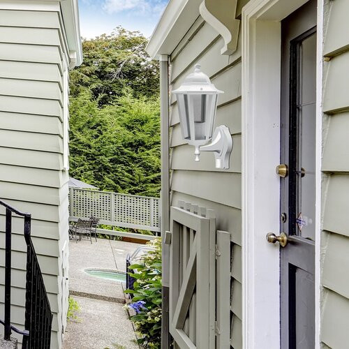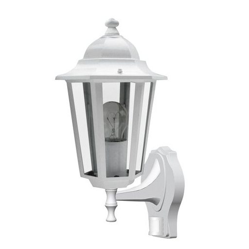 Klasszikus megjelenésű kültéri falikar 1 db foglalattal, beépített mozgásérzékelővel, felső állású kivitelben. 36 cm magas, 23 cm kinyúlású.