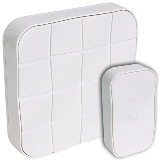 BELLW1-1V1 Vezeték nélküli csengő, négyzetes, 1 adó, 1 vevő3×AA, 1×CR2032, IP44, 100m, 10 music