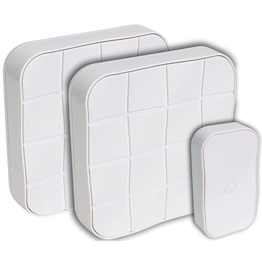 BELLW1-1V2 Vezeték nélküli csengő, négyzetes, 1 adó, 2 vevő3×AA, 1×CR2032, IP44, 100m, 10 music