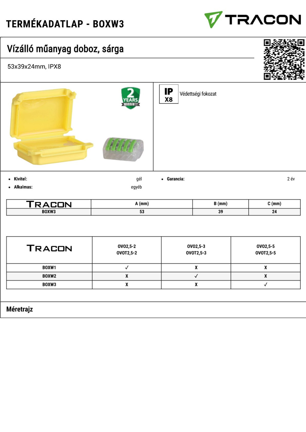 BOXW3 BOXW3 Vízálló műanyag doboz, sárga53x39x24mm, IPX8