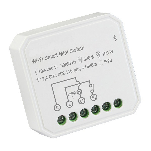- az intelligens mini kapcsoló segítségével már meglévő 1 pólusú villanykapcsoló kiváltható, ezáltal okostelefonnal is vezérelhetővé válik a világitás