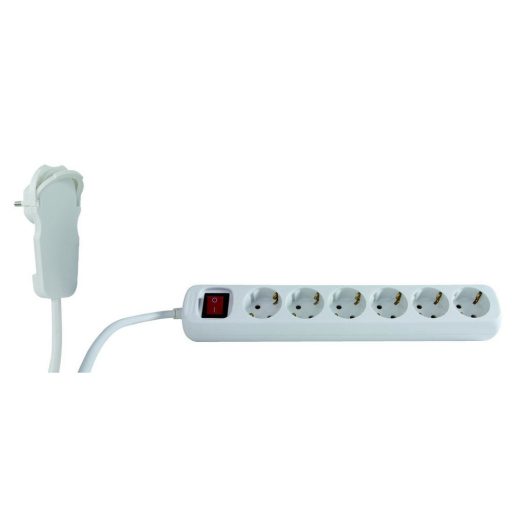 0012626114 Asztali elosztó 6-os kapcsolóval, 2m, 3x1.5, lapos dugóval, fehér