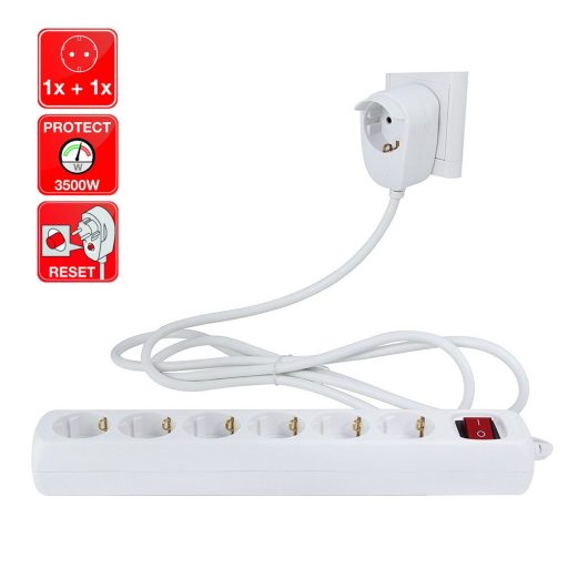 0012692114 Asztali elosztó "Powersplit" 6+1-es kapcsolóval 2m, túlterh.véd, fehér