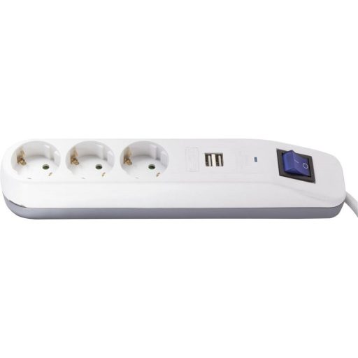 0014348100 Asztali elosztó "ICE" 3-as kapcsolóval 2USB-vel 1.4m fehér-szürke