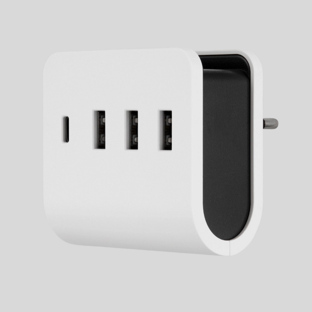 0020820103 USB 4-es töltőadapter 3xUSB-A+1xC telefontartóval (0435H)