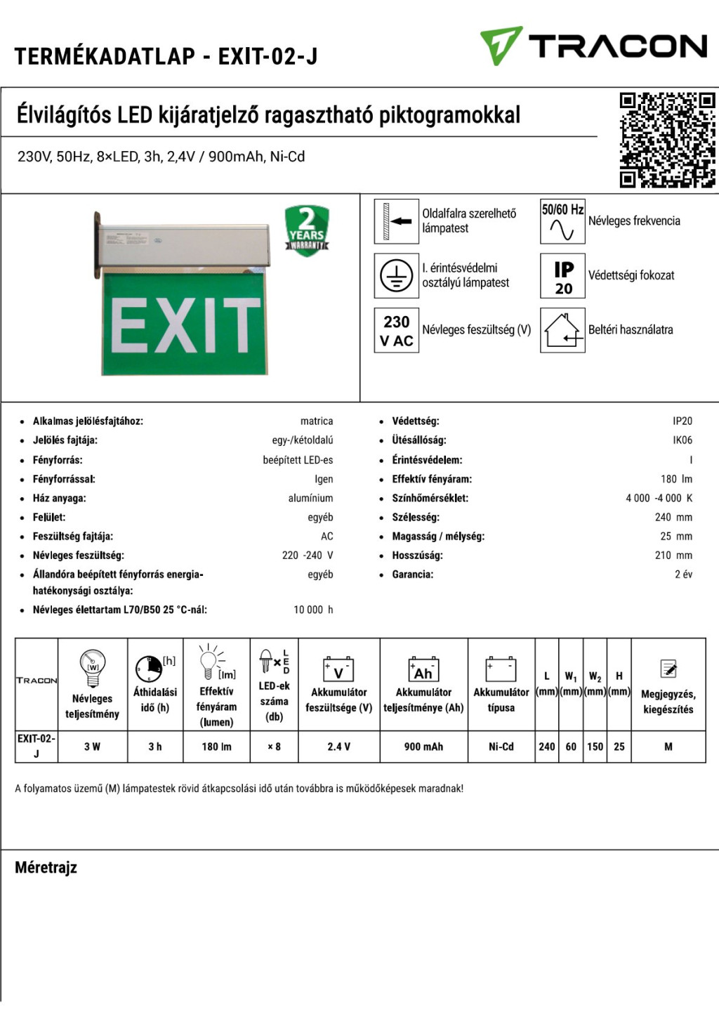 EXIT-02-J EXIT-02-J Élvilágítós LED kijáratjelző ragasztható piktogramokkal230V, 50Hz, 8×LED, 3h, 2,4V / 900mA