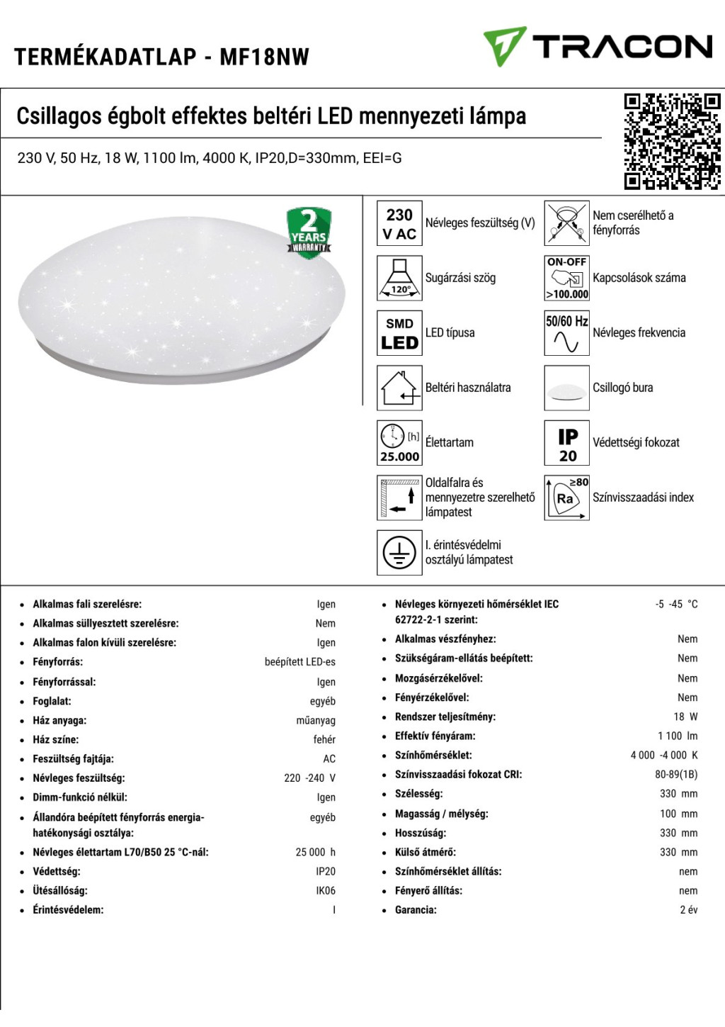 MF18NW Csillagos égbolt effektes beltéri LED mennyezeti lámpa230 V, 50 Hz, 18 W, 1100 lm, 4000 K, IP